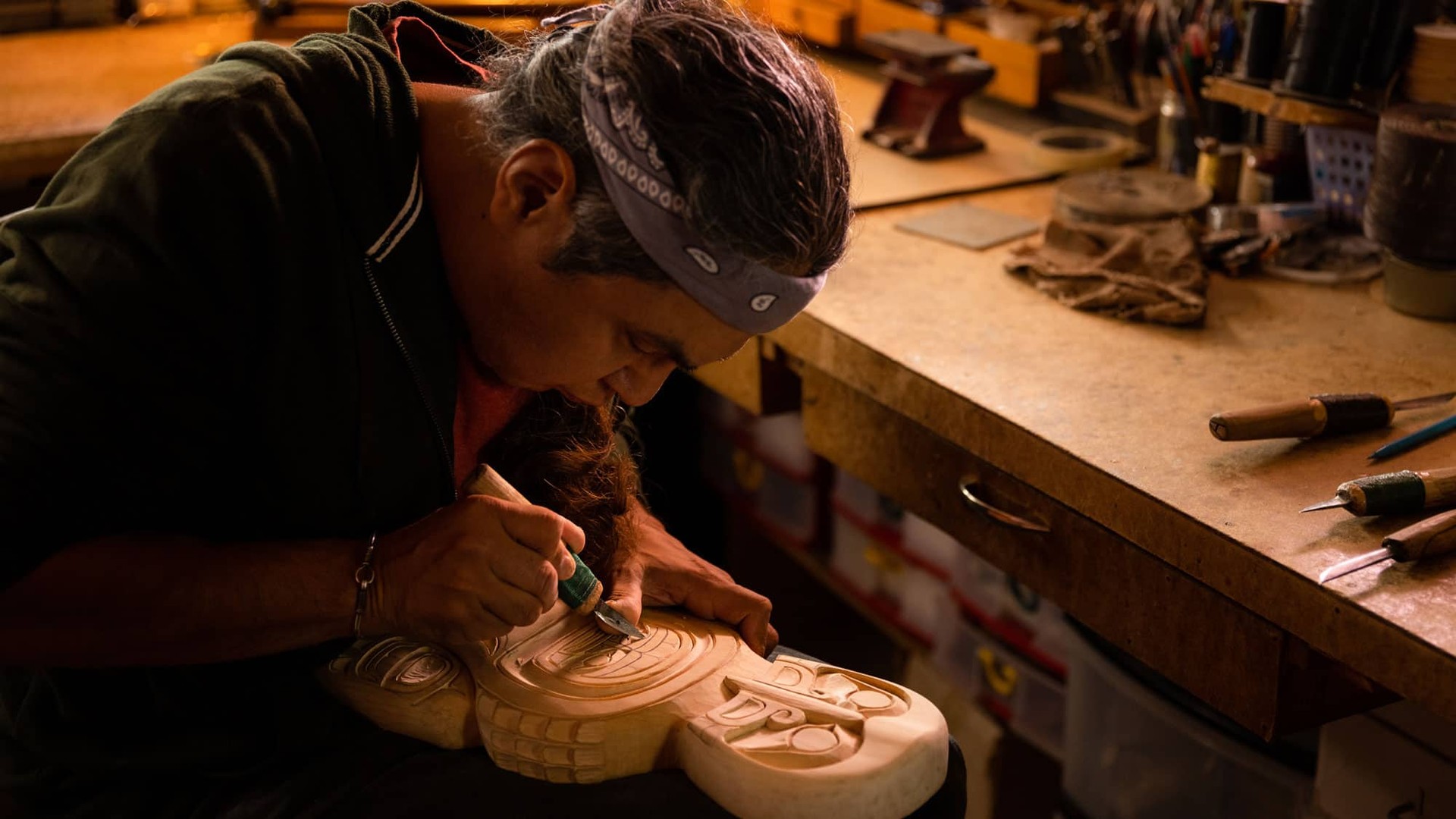 Around 25 minutes’ drive northwest along the coast is the town of Sechelt. Here you’ll find Artie George at Coast Raven Design Studio. He’s an indigenous sculptor from the Tsleil-Waututh Nation who has been carving for 36 years, creating beautiful artworks from native cedar and yellow pine.
