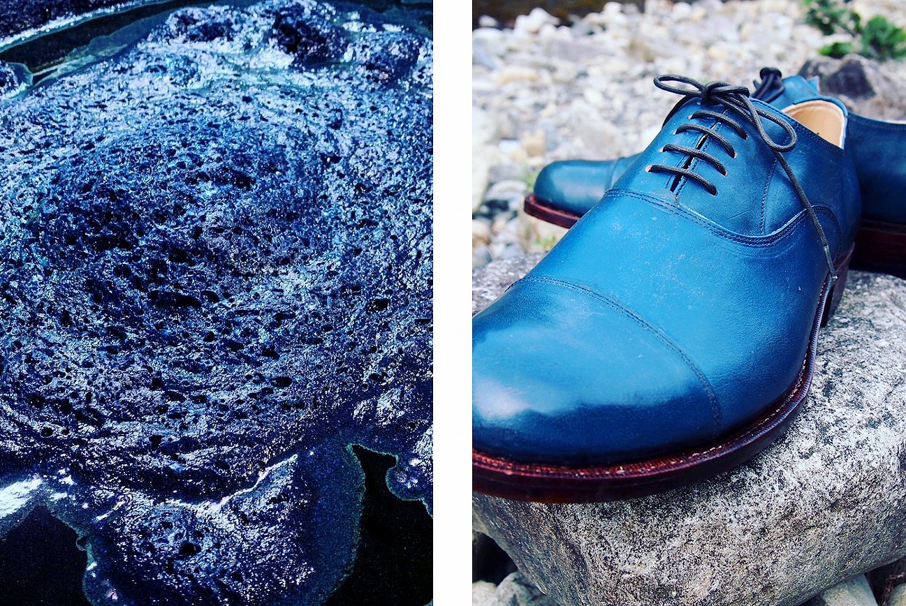 Takuya Shoji uses the organic indigo dye to add a wash of colour to a pair of formal shoes.